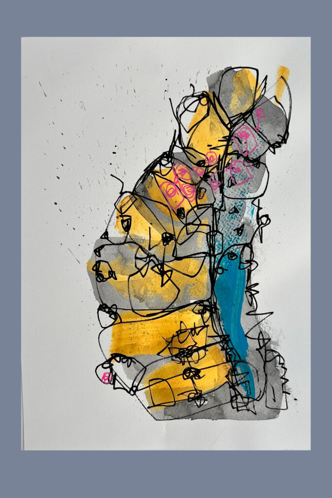£55.00Mixed Media: Acrylic Paint, Watercolour Pen and Ink on paper, framed with mount board.50x40cm