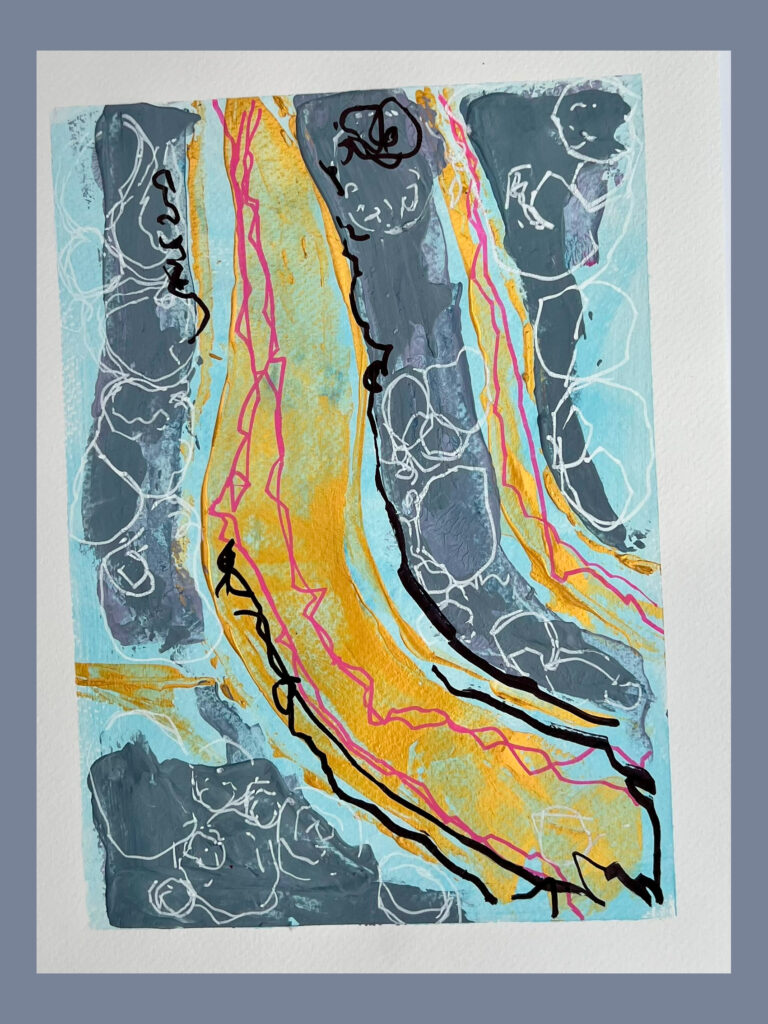 £55.00Mixed Media Acrylic Paint, Pen and Ink on paper, framed with mount board. 30x40cm