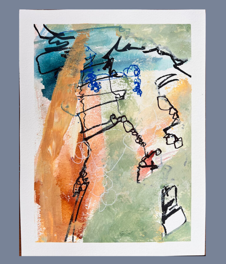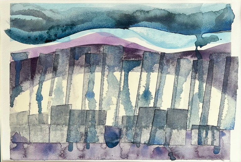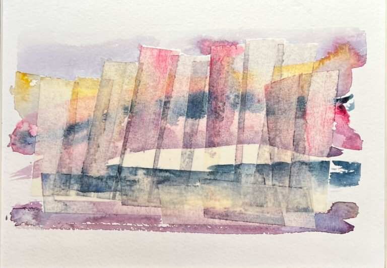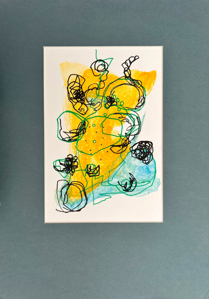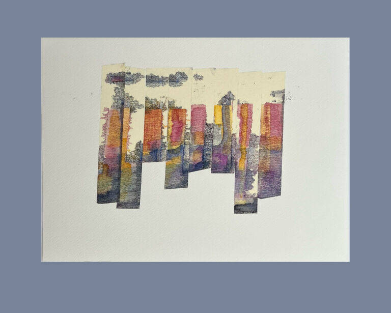 £50.00Mixed Media: Watercolour, Collage and Ink, framed with mount board 20x30cm